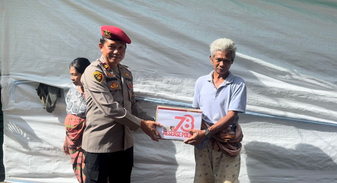Baksos tersebut dipimpin langsung oleh Kasat Reskrim bersama personel. Paket sembako dan kebutuhan pokok lainnya diserahkan secara langsung kepada warga terdampak, sebagai upaya meringankan beban sekaligus memberikan dukungan moral bagi keluarga yang kehilangan tempat tinggal.