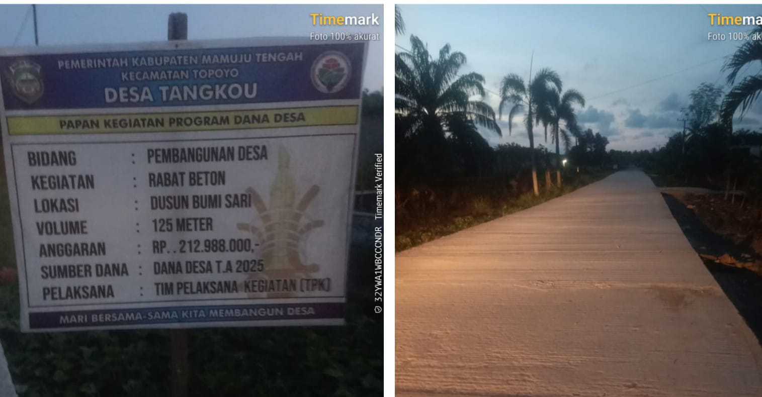 Salah satu upaya yang di lakukan pemerintah Desa tangkou pada tahun ini, yakni melaksanakan kegiatan pembangunan jalan lingkungan, jenis jalan rabat beton yang di biayai dari Dana Desa (DD) tahun anggaran 2025.