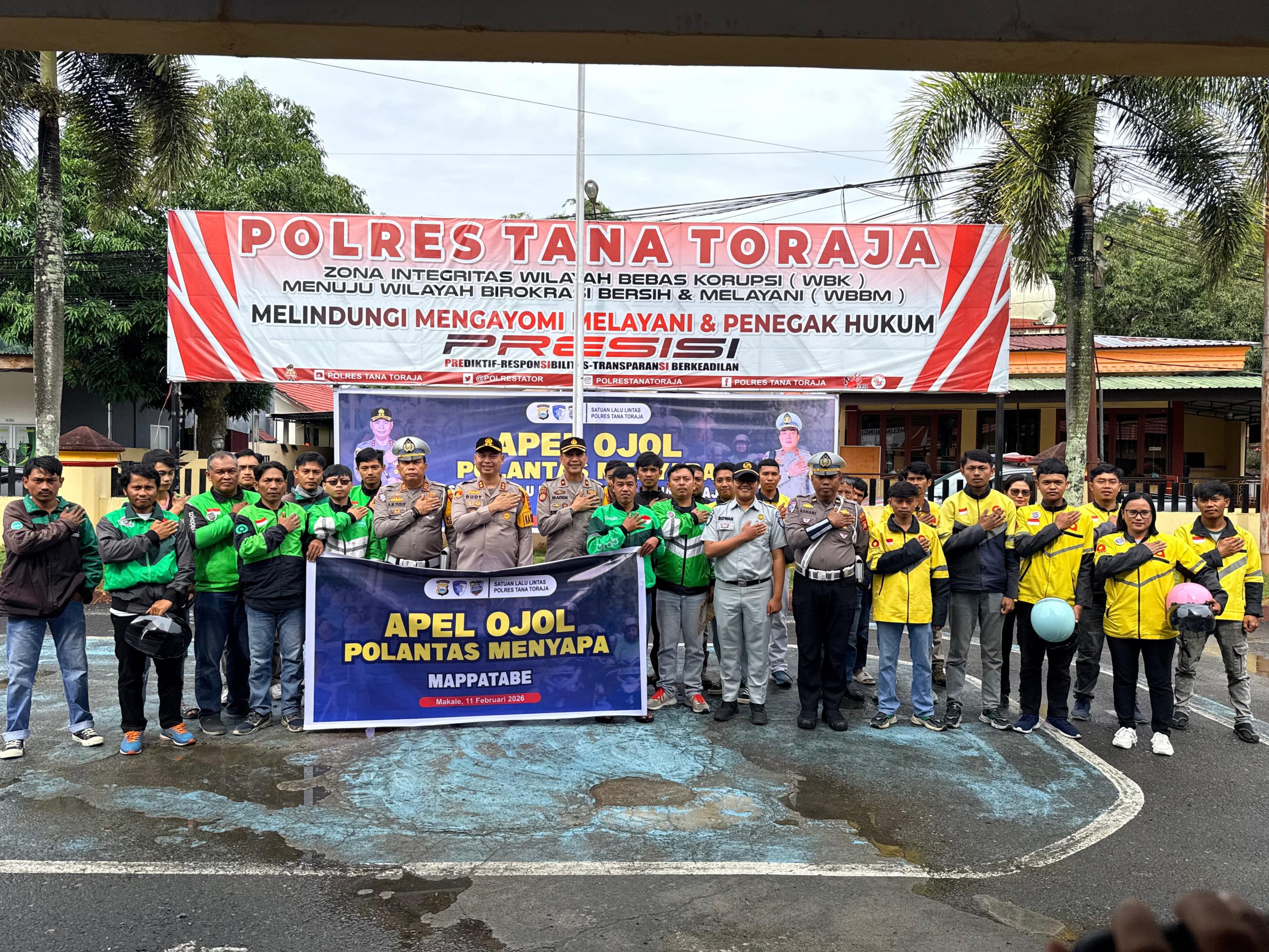 Tana Toraja — Kepolisian Resor Tana Toraja menggelar Apel Ojek Online (Ojol) Kamtibmas secara serentak yang dirangkaikan dengan penyematan Pin Polantas Mappatabe serta pemasangan helm kepada perwakilan komunitas ojek online yang bertempat di lapangan apel Mapolres Tana Toraja, Rabu (11/02/26).