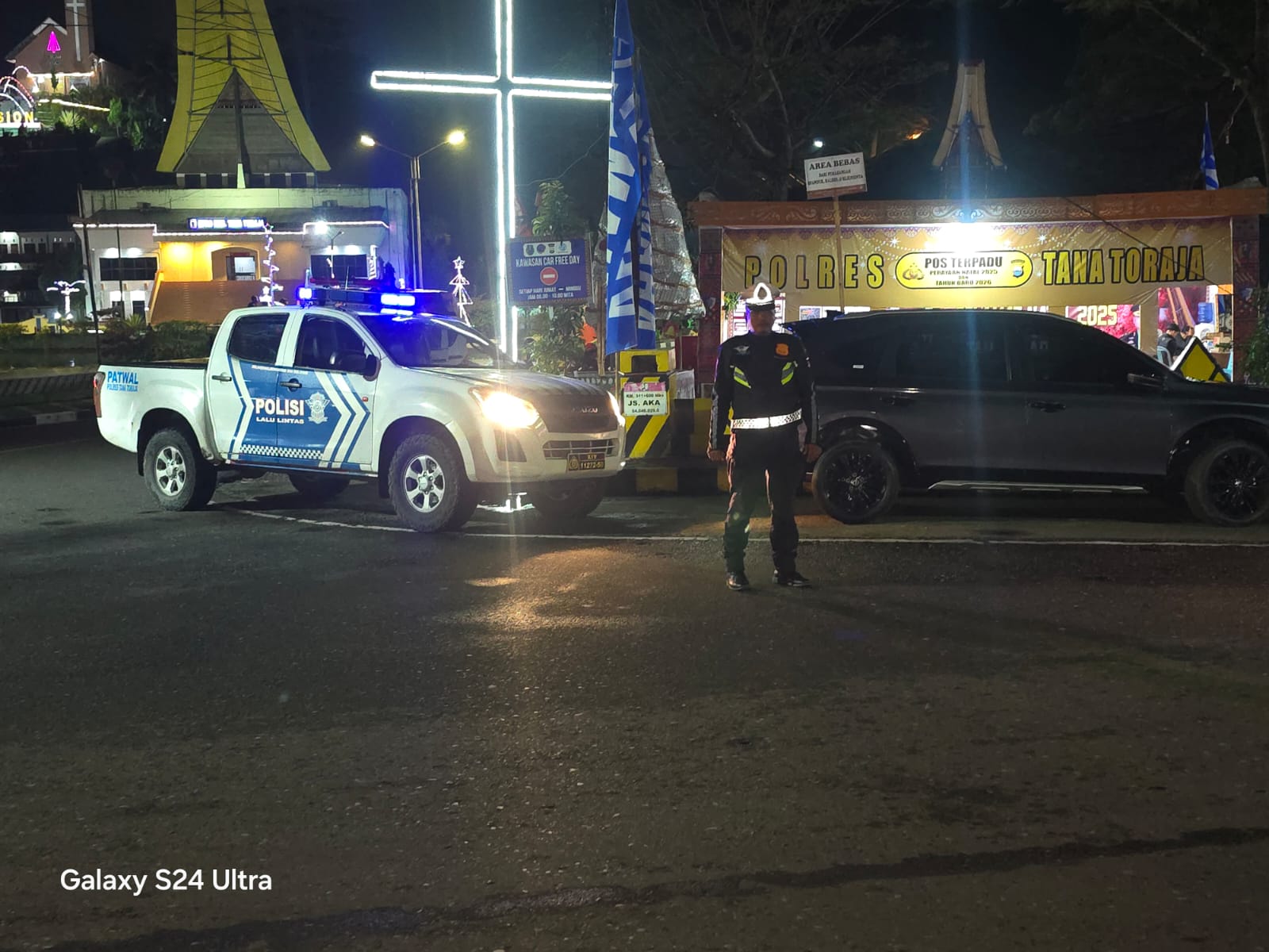 Tana Toraja – Guna mewujudkan kelancaran serta keselamatan pengguna jalan pada malam hari, personel Polres Tana Toraja yang tergabung dalam Operasi Lilin 2025 mengintensifkan pengaturan arus lalu lintas di sejumlah titik strategis, khususnya di Pos Pelayanan Salubarani dan Pos Terpadu Makale Plaza Kolam Makale, Jumat malam (26/12/25).