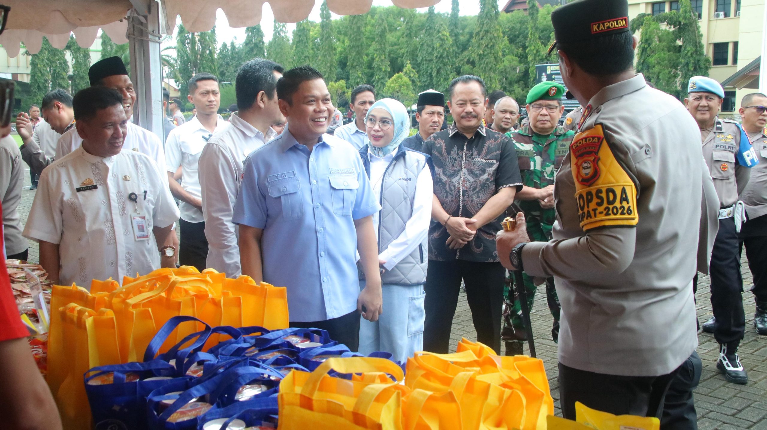 Kapolda Sulawesi Selatan Irjen Pol. Djuhandhani Rahardjo Puro, S.H., M.H., bersama Wakil Ketua II DPRD Sulsel Yasir Machmud, meninjau langsung pelaksanaan bazar dan gerakan pangan murah yang dilaksanakan di Mapolda Sulsel.