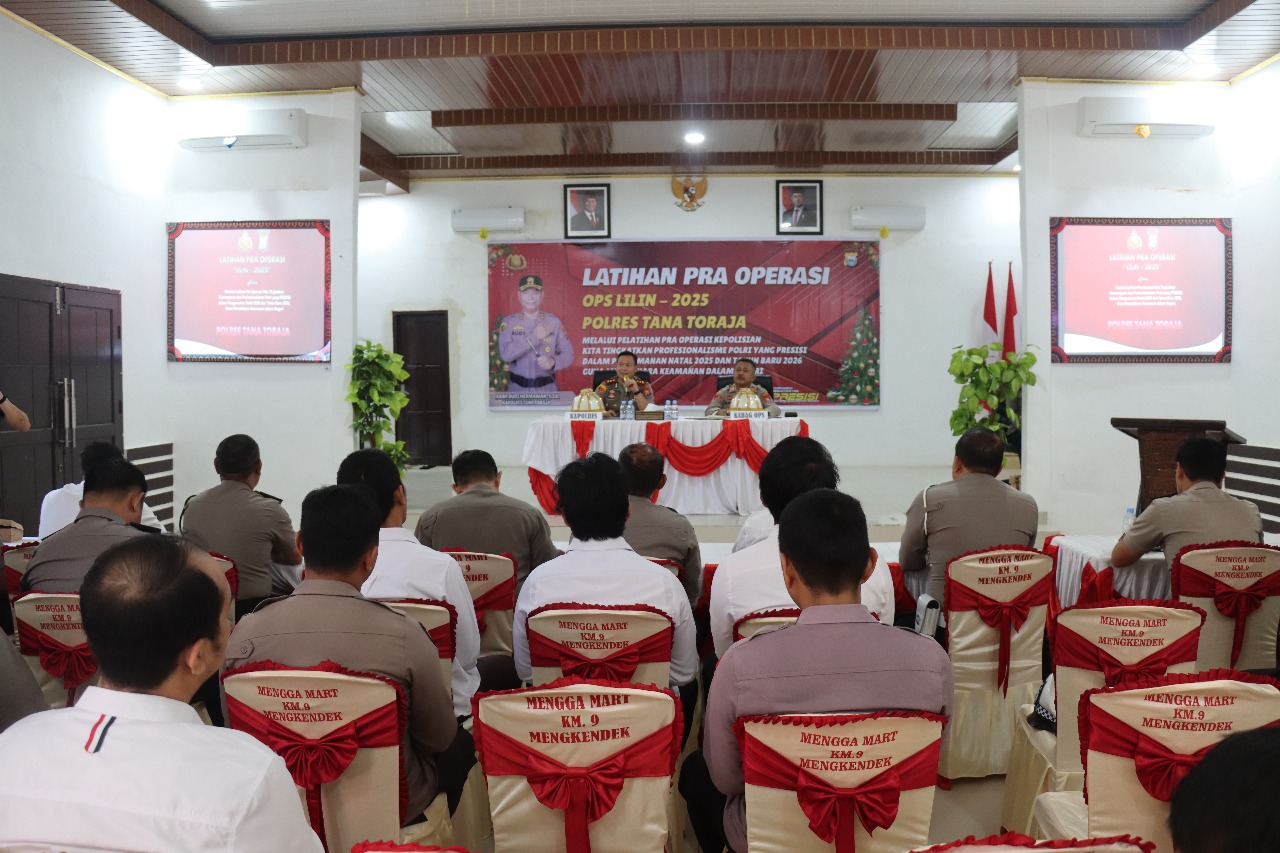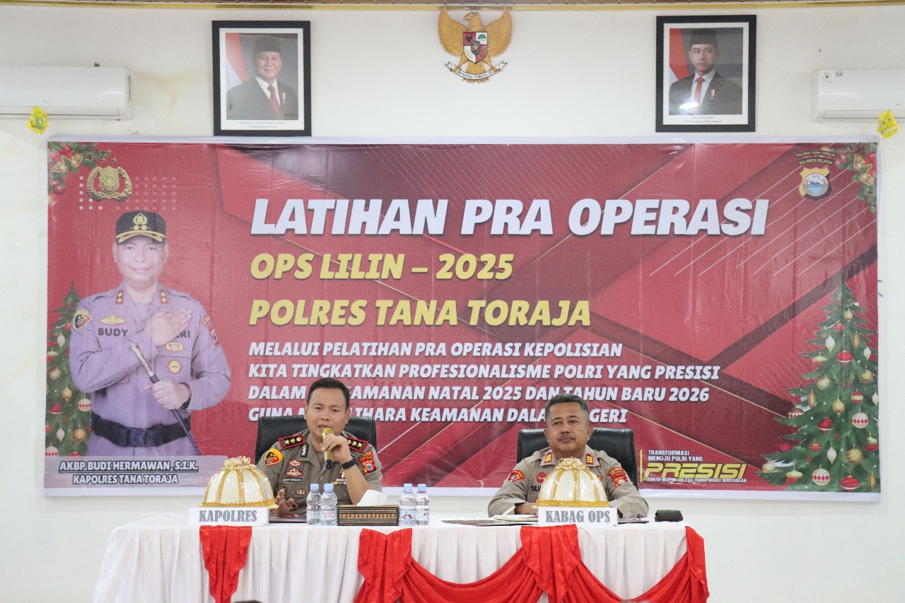 Portal Global.my.id – Dalam rangka menghadapi perayaan Natal 2025 dan Tahun Baru 2026, Polres Tana Toraja menggelar Latihan Pra Operasi (Ops) Lilin 2025, Senin (15/12/2025) di Aula Wicaksana Laghawa Polres Tana Toraja, latihan ini dipimpin oleh Kapolres Tana Toraja AKBP Budi Hermawan.