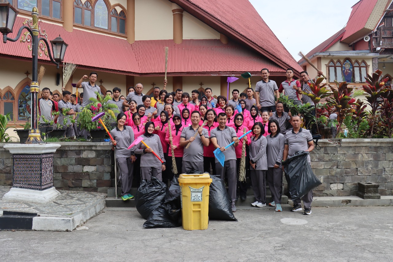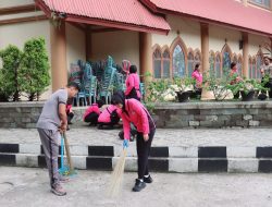 Polri Peduli Lingkungan, Kapolres Tana Toraja dan Bhayangkari Laksanakan Kerja Bakti di Gereja Katolik Makale