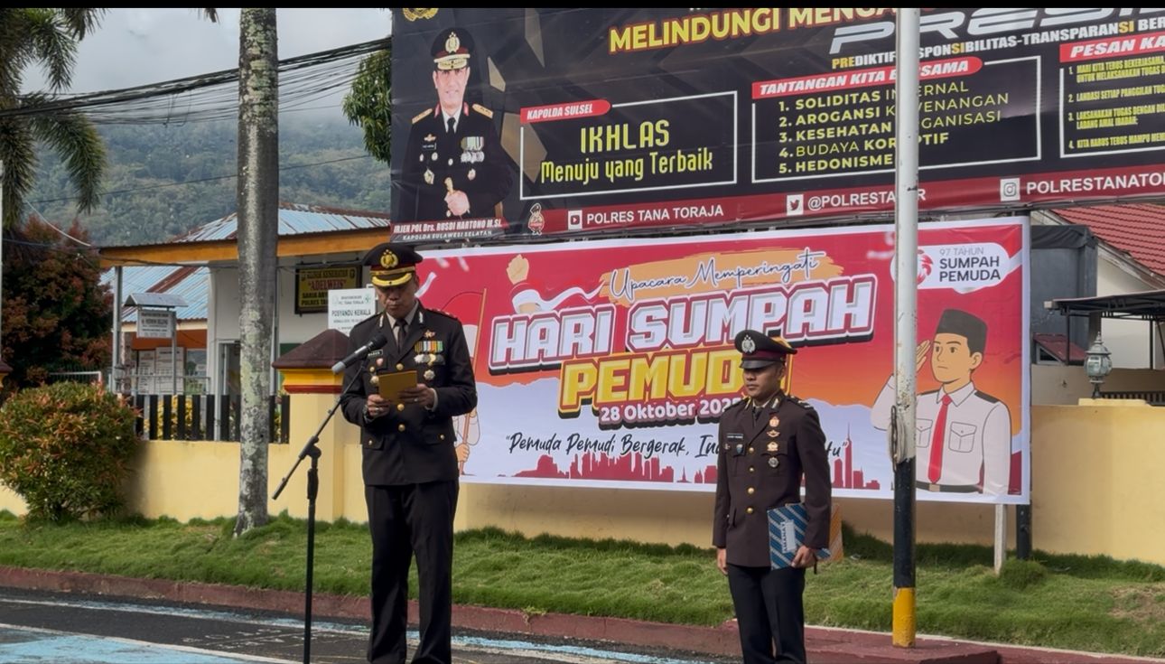 Dalam upacara tersebut, Wakapolres Tana Toraja, Kompol A. Madenanri, bertindak selaku inspektur upacara. Tema peringatan tahun ini adalah “Pemuda Pemudi Bergerak, Indonesia Bersatu”. Tema ini mengajak seluruh elemen bangsa untuk bersatu dan bekerja sama dalam memajukan Indonesia.